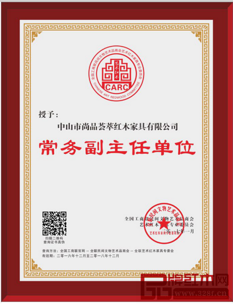 “全聯(lián)藝術紅木家具專委會”作為中華全國工商聯(lián)直屬的國家一級商會——全聯(lián)民間文物藝術品商會的下屬專業(yè)委員會,以“推動中國藝術紅木產(chǎn)業(yè)發(fā)展,讓世界愛上中國藝術紅木家具”為使命,有效推動紅木家具行業(yè)的發(fā)展,協(xié)助紅木家具企業(yè)轉型升級,但凡入會企業(yè)均有一定實力和品牌意識,尤其是常務副主任單位必是行業(yè)中的佼佼者,表現(xiàn)不凡,而尚品紅木獲得該榮譽亦是實力的證明。