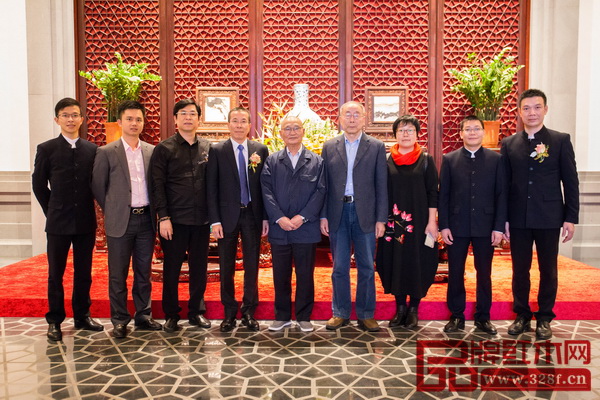 中國高等家具設計專業(yè)創(chuàng)始人胡景初(中),中國紅木家具技術專家曹新民(右四),華南農業(yè)大學研究生導師郭瓊(右三),全聯(lián)藝術紅木家具專業(yè)委員會執(zhí)行會長兼秘書長、弘木傳媒CEO林偉華(左二)等領導嘉賓共同出席見證永華紅木30周年盛典
