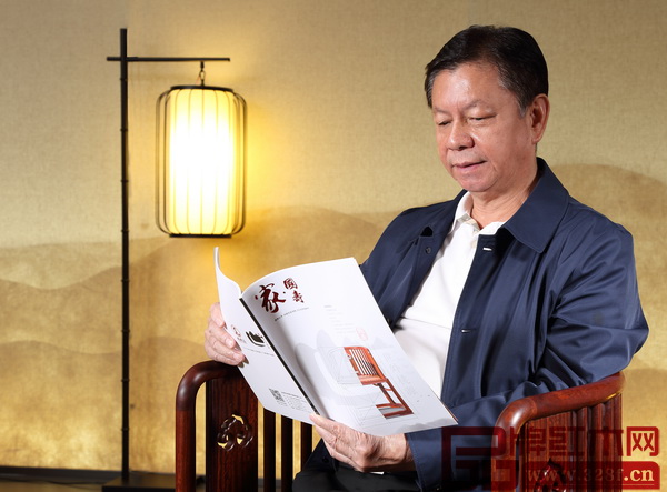 中國(guó)傳統(tǒng)工藝大師、國(guó)壽紅木董事長(zhǎng)陳國(guó)壽與新明式紅木家具代表作——國(guó)壽椅