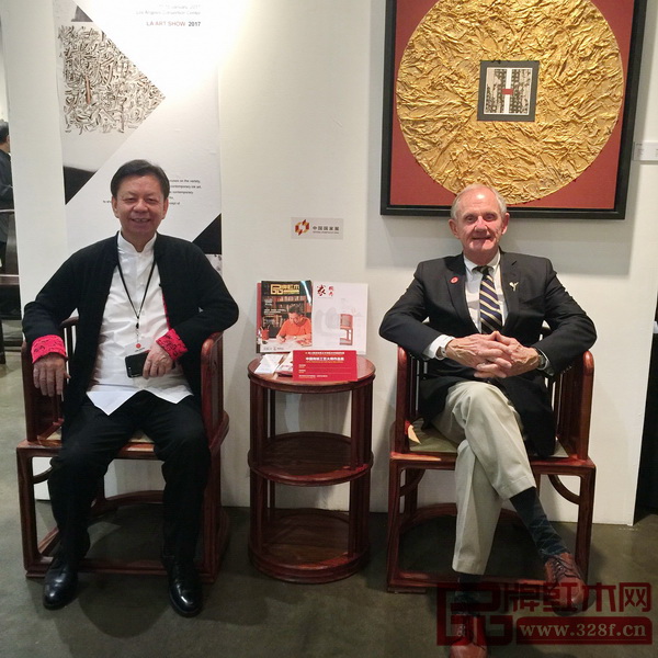 美國(guó)當(dāng)?shù)貢r(shí)間1月11日,第22屆美國(guó)洛杉磯藝術(shù)博覽會(huì)中國(guó)國(guó)家展(以下簡(jiǎn)稱“洛杉磯藝博會(huì)中國(guó)國(guó)家展”)開(kāi)幕式在美國(guó)洛杉磯會(huì)展中心舉辦,展會(huì)將持續(xù)到1月15日。中國(guó)傳統(tǒng)工藝大師、深圳市宜雅紅木家具藝術(shù)品有限公司(以下簡(jiǎn)稱泰和園)董事長(zhǎng)邵湘文,中國(guó)傳統(tǒng)工藝大師、東莞市鴻普軒家具有限公司(以下簡(jiǎn)稱國(guó)壽紅木)董事長(zhǎng)陳國(guó)壽受邀參展。