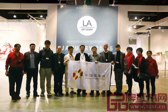 中國傳統(tǒng)工藝大師、國壽紅木董事長陳國壽(左六)受邀參加第22屆美國洛杉磯藝術(shù)博覽會中國國家展