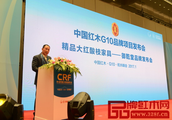 御乾堂董事長(zhǎng)馬海軍在第七屆中國(guó)紅木家具品牌大會(huì)上做品牌發(fā)布