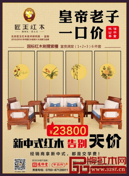 富貴滿堂沙發(fā)(刺猬紫檀六件套)面向廣大的消費(fèi)群眾最終售價只為23800元,匠王紅木再次用“新中式告別天價”的口號去向大家證明“新中式”家具不再是觸不可及的,只要選擇匠王紅木的“新中式”家具,就能擁有一份專屬的“新中式”生活。(來源:北京匠王紅木技術(shù)研究院 腐乳君/文)