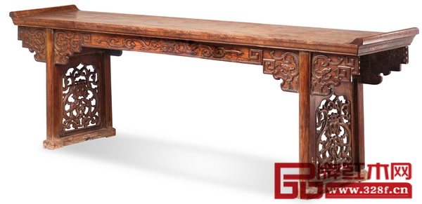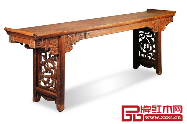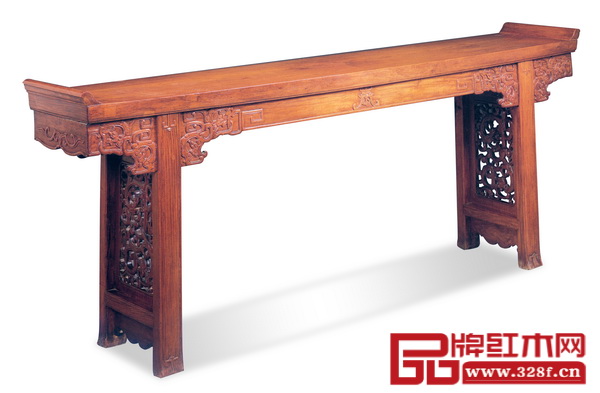 這類家具是外向性的,帶有強烈的社會象征性,一是面向本家族,二是面向社會人群。它是家庭興旺、門庭風光的最重要體現,它們有極強的炫耀性和重觀瞻性。所以,明清兩代對供案、供桌制作極為投入和用心,一般是造型超越常規(guī),用材碩大,造型豪奢,裝點華麗。一些作品超乎尋常,不為傳統(tǒng)范式所宥,甚至有些放任不羈。
