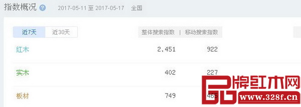 百度指數(shù)顯示,紅木最近30天整體搜索和移動搜索均遙遙領(lǐng)先