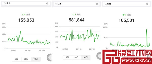 百度指數(shù)顯示,最近30天紅木整體趨勢平穩(wěn),領(lǐng)先實(shí)木和板材