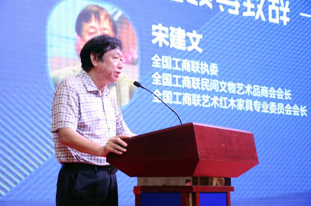 首先,全國工商聯(lián)執(zhí)委、全國工商聯(lián)民間文物藝術(shù)品商會(huì)會(huì)長、全國工商聯(lián)藝術(shù)紅木家具專業(yè)委員會(huì)會(huì)長宋建文代表主辦方致辭。