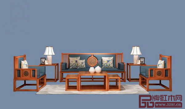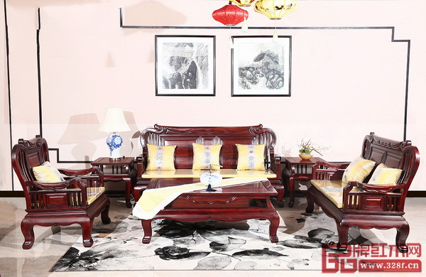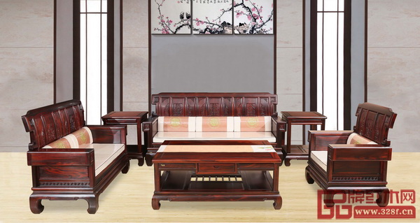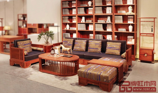 款沙發(fā)整體方正穩(wěn)重,多處配以回字紋修飾,大方簡約的造型不僅點綴了家具,更增加了家具的裝飾美,富有富貴、吉祥寓意。(來源:第四十二期《品牌紅木》雜志)