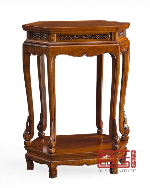 平衡、微妙均勢,面面宜賞;沉靜、淡雅,木色清雋明朗。高束腰間鏤空靈卍字紋,六足纖細,型韻內(nèi)斂,素凈不繁,觀榫為趣。