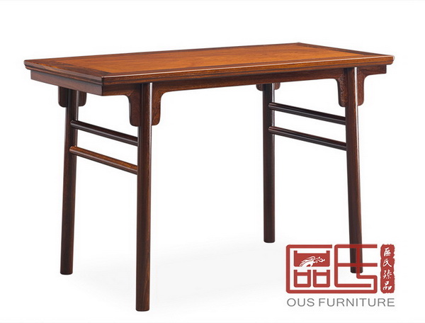 此桌為“一腿三牙羅鍋棖”標準的明式家具樣式,因每一條腿與三塊牙子相交,下又有羅鍋棖而得名。側(cè)腳顯著,腿足上端向內(nèi)傾斜較多,全身以光素為主,簡潔造型和不施裝飾與明早期文人追求自然、古樸、高雅、精致的精神境界不謀而合。