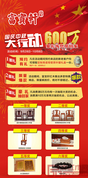 9月28日—10月8日,富寶軒紅木“國慶中秋大行動,600萬豪禮等您帶回家”圈粉活動火熱進行。