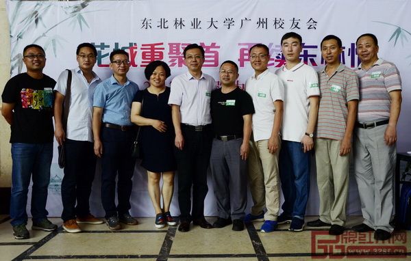 東北林業(yè)大學(xué)副校長周宏力(左五)、東北林業(yè)大學(xué)廣州校友會會長劉恒喜(右一)與部分校友合影留念