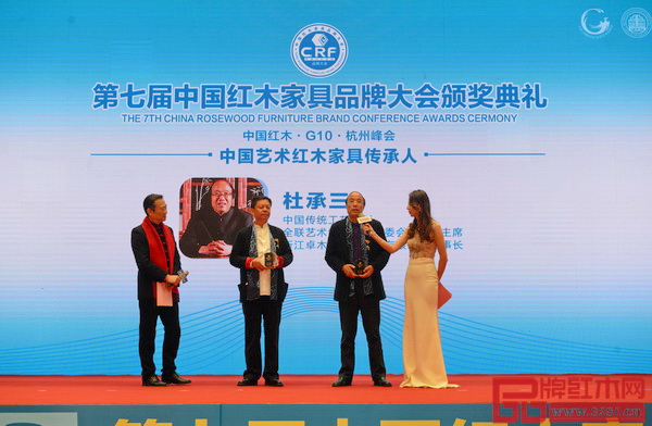 第七屆中國紅木家具品牌大會上,杜承三被評為中國藝術(shù)紅木家具傳承人