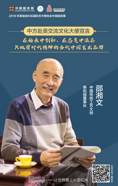 中國傳統(tǒng)工藝大師、泰和園董事長邵湘文將作為2018中國國家展紅木文化傳播大使再赴美國交流