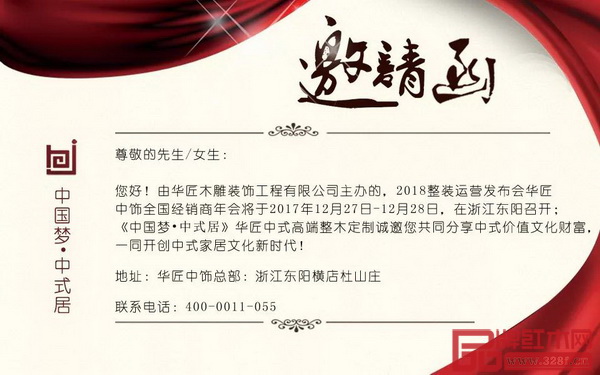 華匠中飾2018整裝運營戰(zhàn)略發(fā)布會暨全國經(jīng)銷商年會邀請函