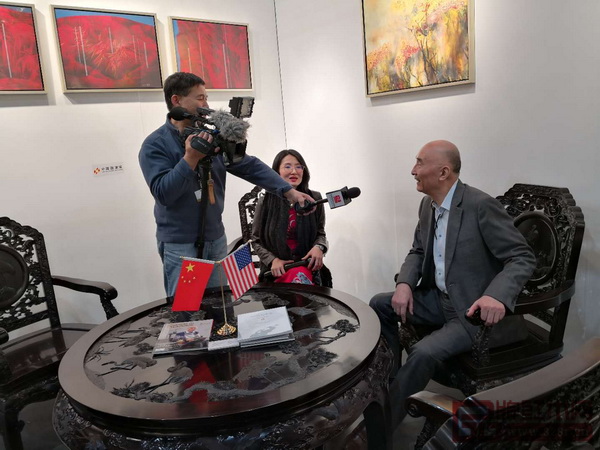 泰和園邵湘文大師在展會(huì)現(xiàn)場(chǎng)接受美國(guó)國(guó)家電視臺(tái)采訪