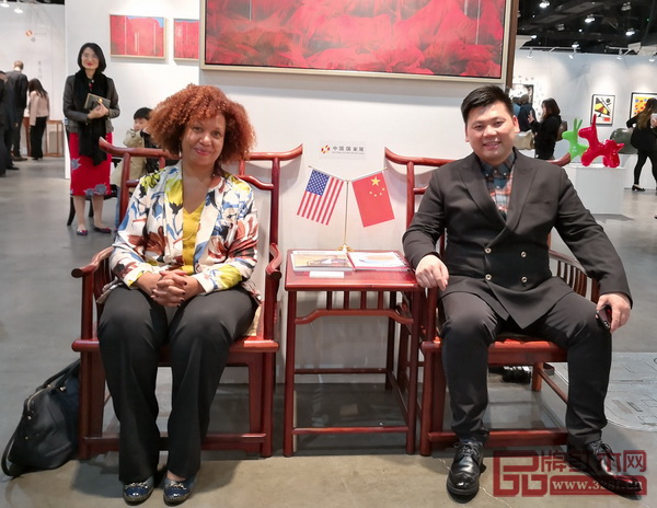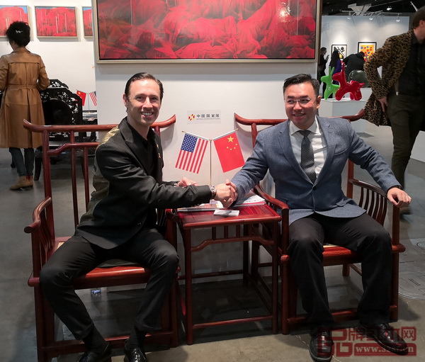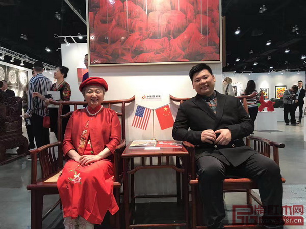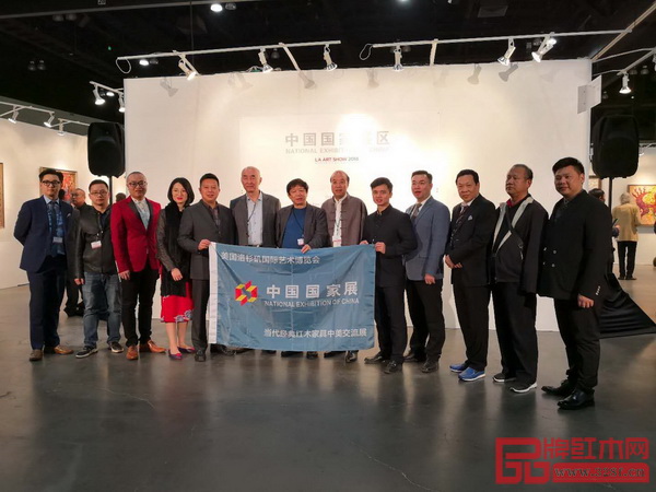 國壽紅木副董事長陳淦凡(右四)和副總經(jīng)理王耀佳(右一)受邀參加2018美國洛杉磯藝術(shù)博覽會(huì)中國國家展