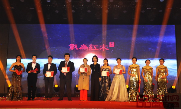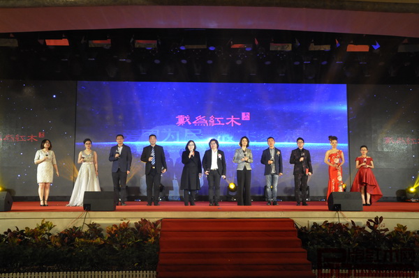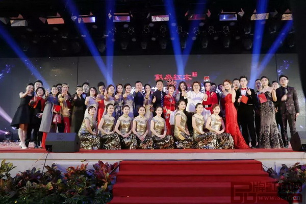 戴為紅木總裁戴愛國(右四)與眾嘉賓在晚會上合影留念