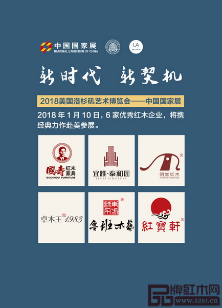 “美國(guó)洛杉磯國(guó)際藝術(shù)博覽會(huì)中國(guó)國(guó)家展之首屆當(dāng)代中國(guó)經(jīng)典紅木家具展”舉行,東莞國(guó)壽紅木、深圳泰和園、東陽(yáng)明堂紅木、東陽(yáng)卓木王、江西魯班木藝、中山紅寶軒亮相為中國(guó)紅木代言。