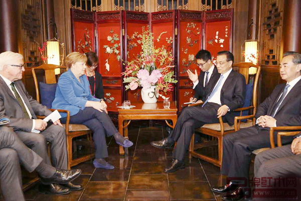 李克強(qiáng)總理在頤和園接待德國(guó)總理默克爾,在一處充滿(mǎn)濃郁中國(guó)特色的會(huì)議室內(nèi)進(jìn)行座談。