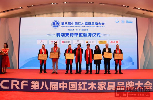 雄業(yè)紅木(右一)作為特別支持單位全程見證了此次紅木品牌大會(huì)