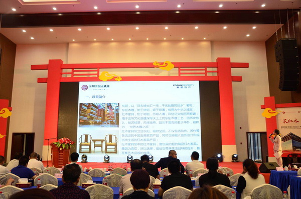 接下來的是《東陽中國木雕城紅木家具館招商發(fā)布會》環(huán)節(jié),現場播放了東陽中國木雕城的宣傳視頻。