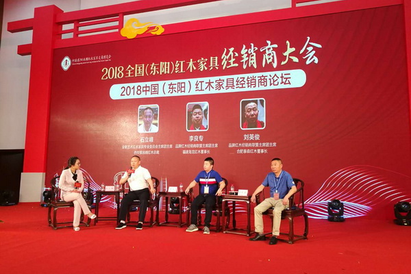進入論壇環(huán)節(jié),主持人邀請全聯藝術紅木家具專業(yè)委員會主席團主席、西安雅居閣總裁石立峰,以及品牌紅木家具經銷商聯盟主席團主席:福建海龍紅木董事長李良專、合肥泰森紅木董事長劉英俊,一起分享對東陽紅木產區(qū)品牌的印象,探討企業(yè)與經銷商如何共贏,如何從傳統(tǒng)轉型。