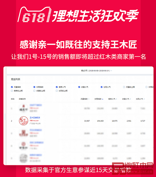 王木匠紅木家具天貓旗艦店在天貓紅木家具類目排名第二