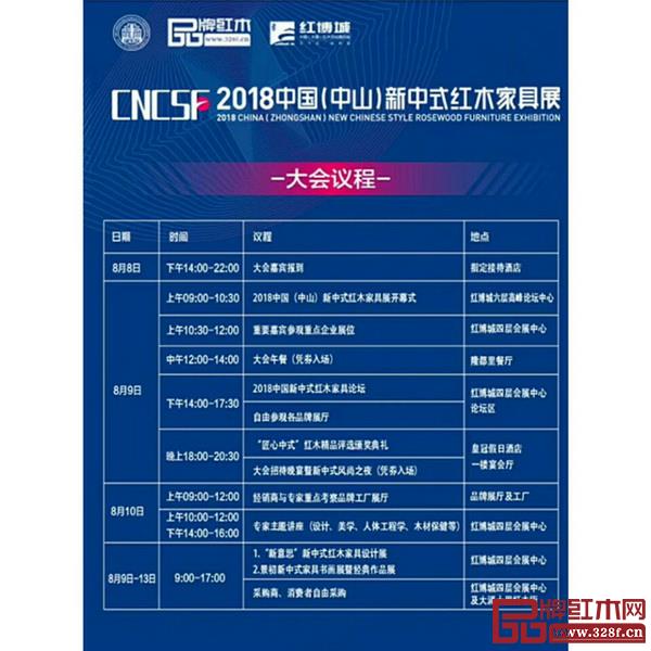 [摘要]8月9日-13日,2018中國(中山)新中式紅木家具展在中國(大涌)紅木文化博覽城四首層會展中心隆重舉行,接下來看看最詳細的參展攻略吧!