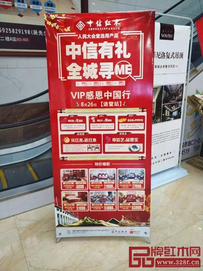 8月26號(hào),浙江中信紅木家具有限公司(以下簡稱中信紅木)“禮”相待, 結(jié)合“情”、“義”、“藝”的感恩活動(dòng)——VIP感恩中國行,中信有禮,全城尋ME在浙江省諸暨市中信紅木諸暨店正式拉開帷幕。