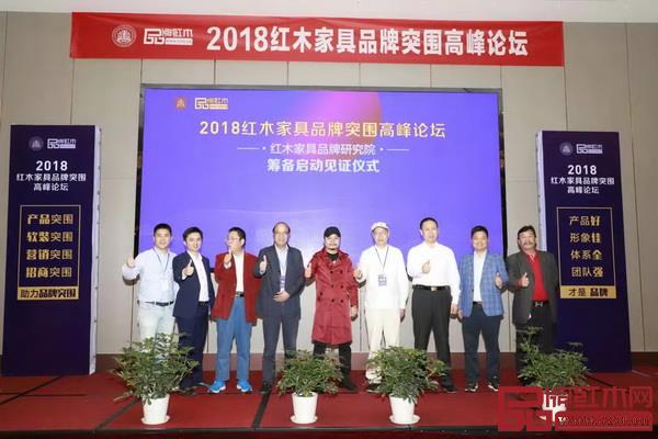 在2018紅木家具品牌突圍高峰論壇上,一眾領(lǐng)導(dǎo)、專(zhuān)家、企業(yè)大咖共同見(jiàn)證紅木家具品牌研究院籌備啟動(dòng)