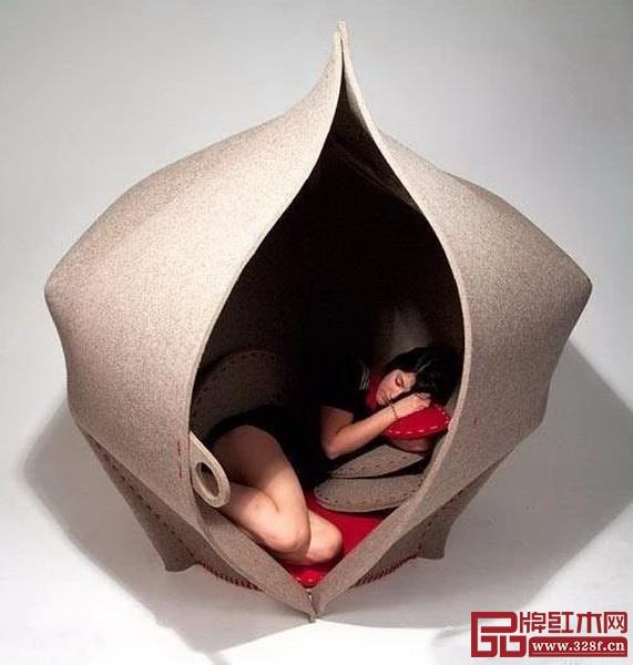 面對(duì)紛擾的社會(huì),我們渴望有一個(gè)不被別人打擾的空間,讓疲憊的心靈能獲得暫時(shí)的寧?kù)o。Freyja Sewell設(shè)計(jì)的Hush座椅不僅能提供一個(gè)不被打擾的空間,而且座椅上的毛毯是用百分百的純羊毛制成,坐上去十分舒適。當(dāng)我們煩惱時(shí),可以關(guān)上“艙門(mén)”,Hush座椅就會(huì)提供一個(gè)私密、安逸又舒適的小空間。