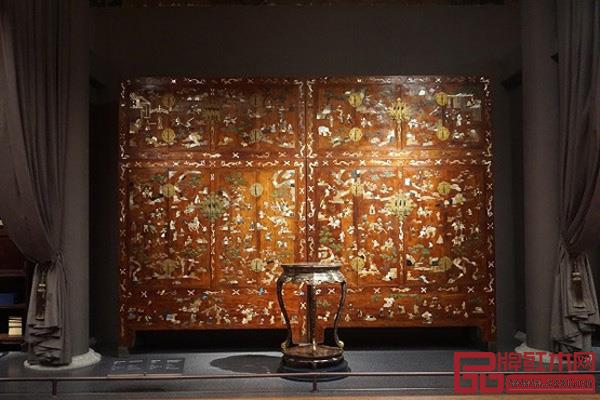 清代家具以宮廷家具為代表,從現(xiàn)今存世的清代宮廷家具來(lái)看,清代宮廷家具多數(shù)都是精雕細(xì)刻的典型之作, 造型上威嚴(yán)莊重,厚重凝華、富麗堂皇,在裝飾風(fēng)格上采用多種表現(xiàn)手法,這時(shí)的清代的宮廷家具已遠(yuǎn)遠(yuǎn)不只是滿足統(tǒng)治者坐臥起居的最基本的生活需要,而是形成了“求多、求滿、求富貴”的風(fēng)格特點(diǎn),統(tǒng)治者“不差錢”的心理開始體現(xiàn)在家具制作上。 家具制作用料奢靡,裝飾力求華麗,并注意與各種工藝品相結(jié)合,如在家具上嵌銅、嵌琺瑯、嵌玉、嵌螺鈿、嵌象牙等,以求達(dá)到新奇出彩的效果。最典型的是清初的黃花梨百寶嵌人物圖頂箱大柜,這是一對(duì)非常珍貴的四面平頂箱立柜,僅故宮與美國(guó)大都會(huì)博物館有藏。這件大柜為黃花梨木包鑲,由頂柜和下面的底柜組成,柜門由各色寶石、螺鈿等嵌出生動(dòng)多彩的畫面組成,上層為歷史故事畫,下層為番人進(jìn)寶圖,柜門下方的柜膛外面以螺甸寶石嵌飾嬰戲圖,邊框飾螭龍紋。