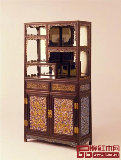 紫檀嵌琺瑯云龍紋柜格,清乾隆