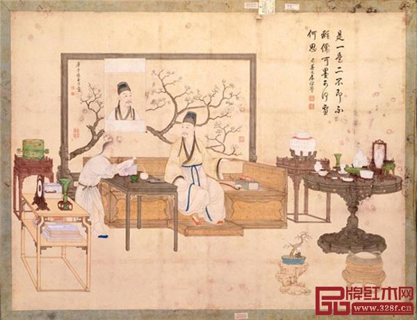 明代家具的陳設(shè)文化是最早審美潮流的黃金時(shí)代。一大批文人參與家具工藝的研究與審美趣味,形成了明式家具風(fēng)格閑適淡雅、崇尚自然的設(shè)計(jì)內(nèi)涵。尤其是到明中葉江南出現(xiàn)的城市鄉(xiāng)居化的現(xiàn)象,大肆興起的造園運(yùn)動(dòng),讓明式家具有了非常大的發(fā)展空間?,F(xiàn)在我們通過現(xiàn)存文獻(xiàn)(刻本、繪畫、插圖等)和大量的實(shí)物資料,可以看出文人內(nèi)齋的陳設(shè),與高品質(zhì)的貴族生活。這一時(shí)期,流傳下來(lái)的不少明代著作,如曹昭的《格古要論》、文震亨的《長(zhǎng)物志》、高濂所著的《遵生八箋》等書籍,都不同程度地探討了明式家具的風(fēng)格與審美。