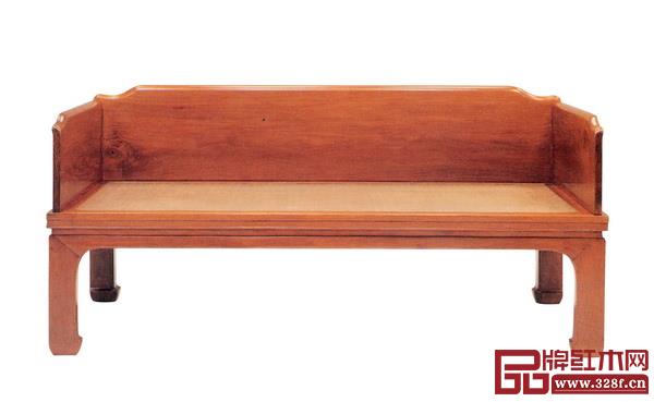 本例為有束腰式,上例羅漢床為無束腰式。本例是前后腿間有羅鍋棖,上例沒有羅鍋棖。