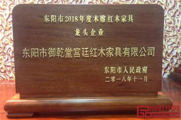 御乾堂紅木獲評(píng)2018年度東陽(yáng)市木雕紅木家具龍頭企業(yè)