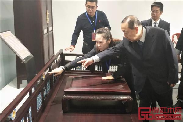 國(guó)務(wù)院參事室特邀研究員、人社部原黨委副書(shū)記、副部長(zhǎng)、東陽(yáng)市紅木產(chǎn)業(yè)發(fā)展顧問(wèn)楊志明和金華市副市長(zhǎng)、東陽(yáng)市委書(shū)記黃敏等領(lǐng)導(dǎo)蒞臨御乾堂紅木參觀指導(dǎo)