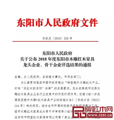 [摘要]浙江中信紅木家具有限公司榮獲2018年度東陽市木雕紅木家具龍頭企業(yè)。