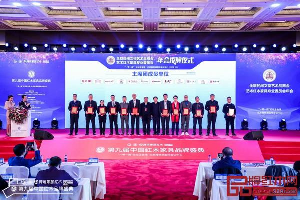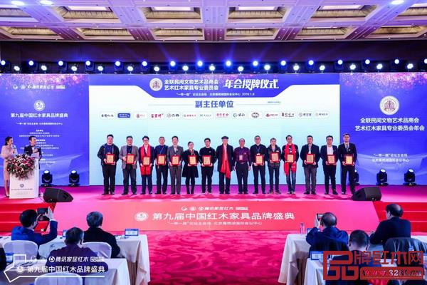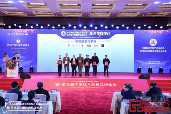 1月8日,全聯(lián)藝術(shù)紅木家具專業(yè)委員會年會為一批有夢想、敢擔(dān)當(dāng)?shù)男袠I(yè)力量成員單位舉行了頒牌儀式。