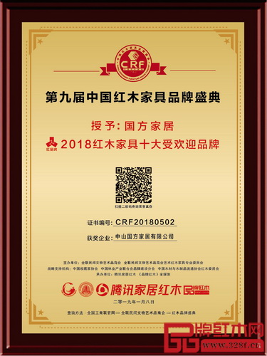 國方家居連續(xù)三年蟬聯(lián)“紅木家具十大受歡迎品牌”