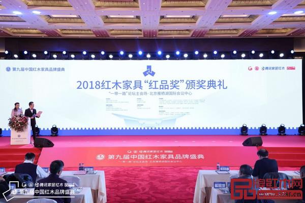 第九屆中國紅木家具品牌盛典系列活動(dòng)之一的2018紅木家具“紅品獎(jiǎng)”評(píng)選頒獎(jiǎng)典禮現(xiàn)場(chǎng)