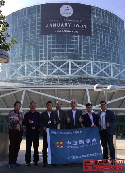 魯班木藝董事長(zhǎng)李愛金(左二)受邀亮相美國(guó)洛杉磯藝博會(huì)中國(guó)國(guó)家展