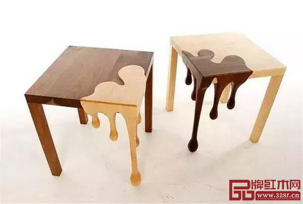 Matthew Robinson設(shè)計了一款充滿趣味和想象力的家具——融化方桌。這款椅子由原木色和褐色兩種顏色木板組成,讓人新奇的是椅子面上的裝飾,遠(yuǎn)遠(yuǎn)看去就像一杯熱騰騰的咖啡剛剛被調(diào)皮的小孩子打翻,咖啡順著椅面準(zhǔn)備滴落在地面上一樣,整體造型形象逼真,非常具有童趣。