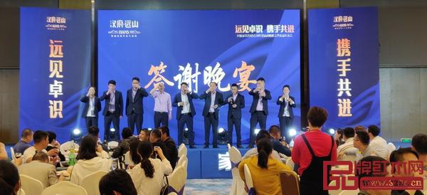 漢府家具2019全國經(jīng)銷商戰(zhàn)略峰會(huì)答謝晚宴上,漢府家具董事長(zhǎng)馬漢龍率高管領(lǐng)導(dǎo)進(jìn)行祝酒儀式