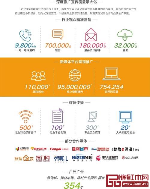 2020成都建博會(huì)將通過線上線下、展商專業(yè)觀眾互動(dòng)等全方位多角度的宣傳渠道,除傳統(tǒng)宣傳方式外,將運(yùn)用更多新媒體、新形式深度宣傳,包括:電話邀約、短信、郵件、快遞直郵、網(wǎng)站、微信公眾號(hào)、QQ、專業(yè)媒體、大眾媒體、戶外廣告、精準(zhǔn)地推等近二十種形式,以確保專業(yè)買家到場(chǎng)質(zhì)量,展商實(shí)現(xiàn)貿(mào)易合作與品牌推廣雙贏。