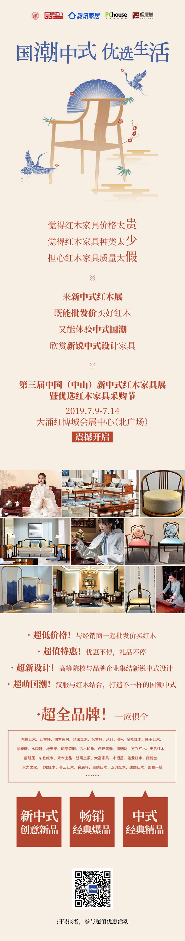 第三屆中國(中山)新中式紅木家具展暨優(yōu)選中式紅木家具采購節(jié)將于7月9-14日在廣東中山大涌紅博城會展中心舉行。