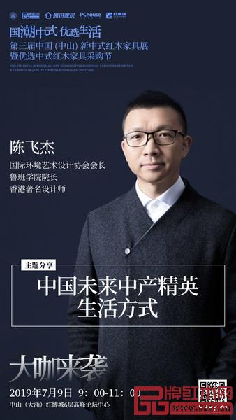 未來家居行業(yè)將是“得新中產(chǎn)者得天下”的格局,那么中國未來中產(chǎn)精英的生活方式將是怎樣的?7月9日,國際環(huán)境藝術(shù)設(shè)計協(xié)會會長、魯班學(xué)院院長、香港著名設(shè)計師陳飛杰將在新中式紅木展上揭曉答案。