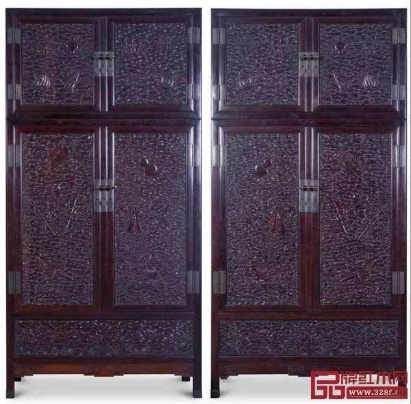 清中期 紫檀滿雕八寶八仙紋大四件柜