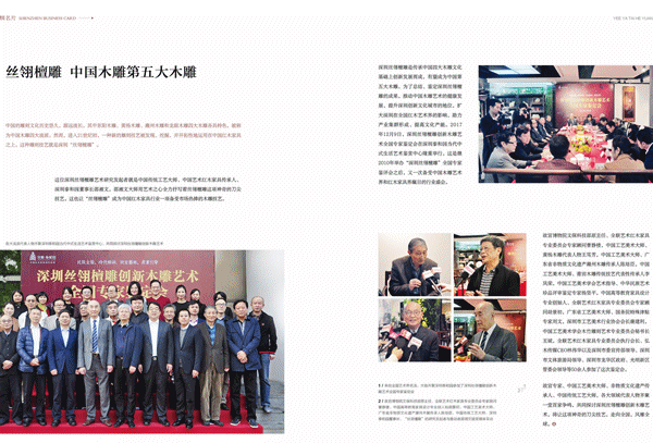 《泰和》“深圳名片”章節(jié),披露了邵湘文大師如何與絲翎檀雕結(jié)緣、絲翎檀雕的“前世今生”等動人故事,曝光了12位行業(yè)大師、業(yè)界名流對深圳絲翎檀雕的真知灼見。